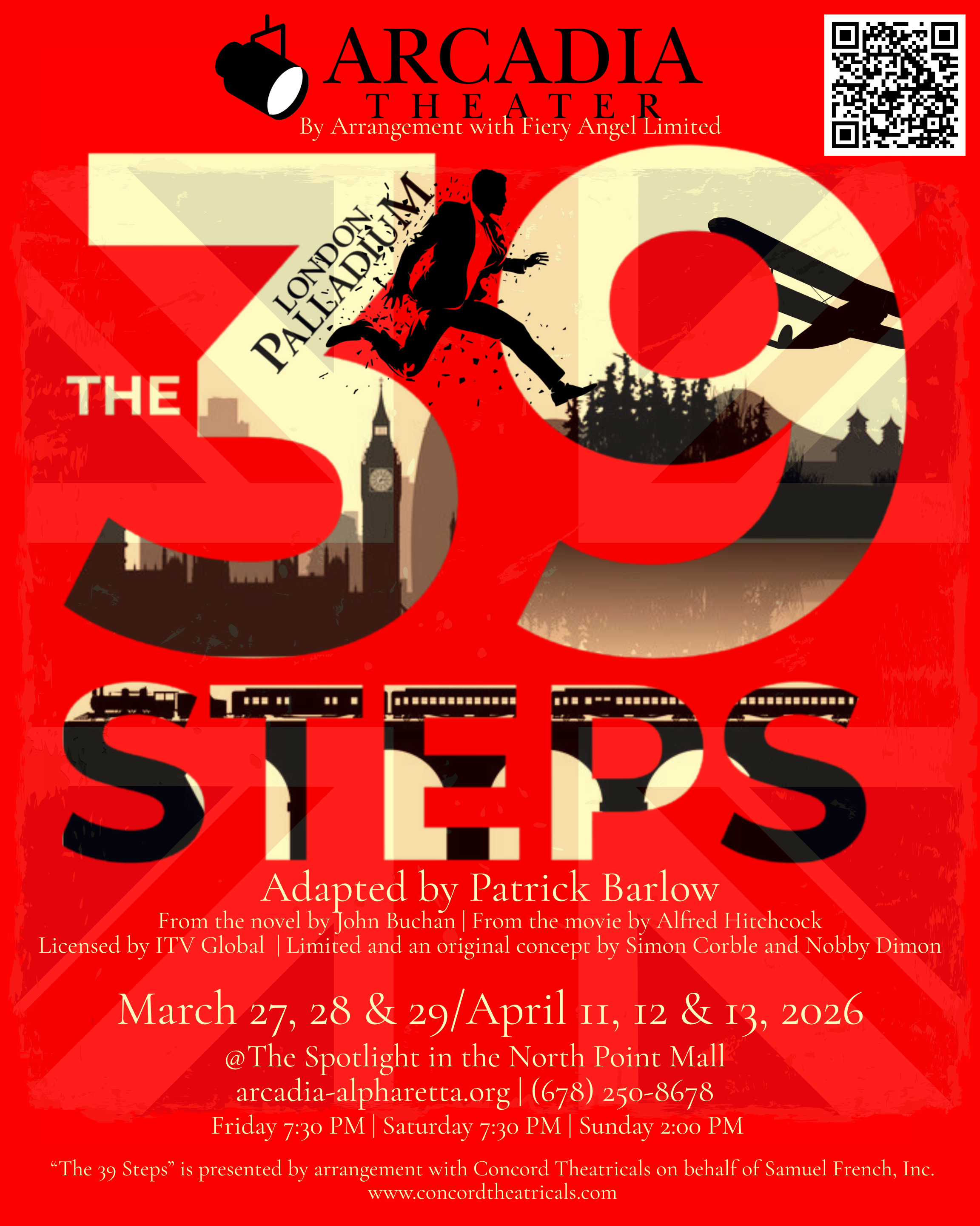 Mix a Hitchcock masterpiece with a juicy spy novel, add a dash of Monty Python and you have The 39 Steps, a fast-paced whodunit for anyone who loves the magic of theatre! This two-time Tony and Drama Desk Award-winning treat is packed with nonstop laughs, over 150 zany characters (played by a ridiculously talented cast of four), an onstage plane crash, handcuffs, missing fingers, and some good old-fashioned romance!